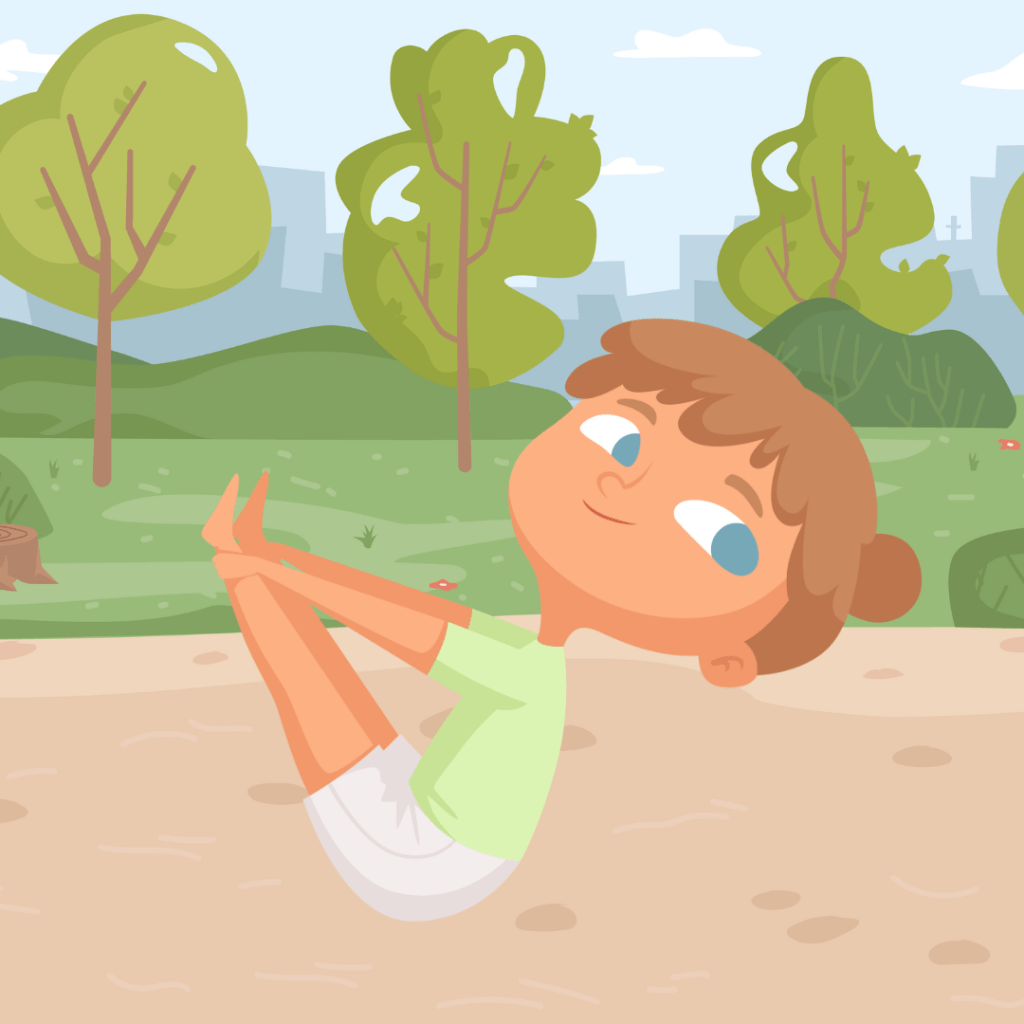 The boat pose is great for strengthening the core and stretching the hamstrings. In this pose, the abdominal, back and leg muscles are activated, helping create strong little bodies.